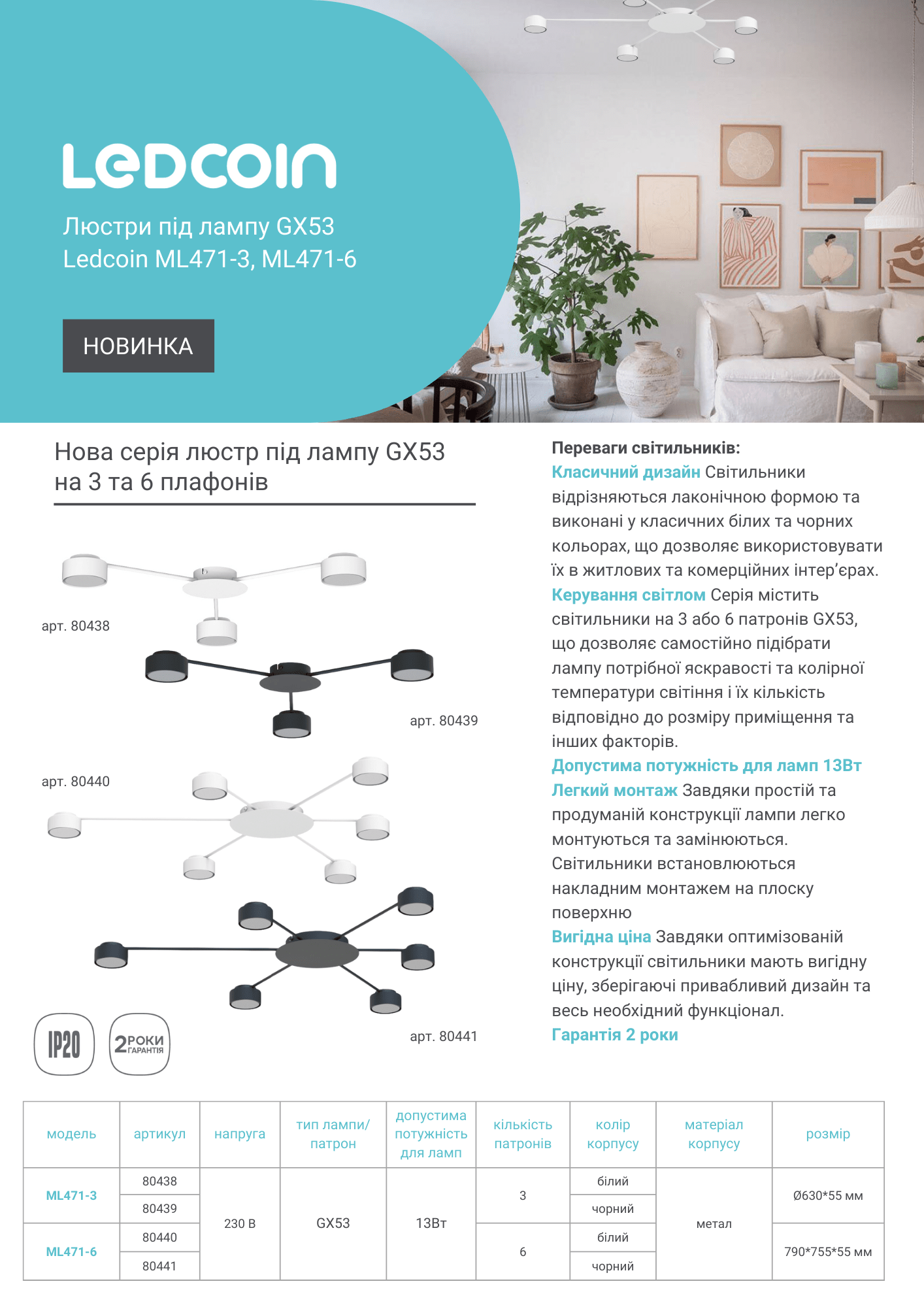 Нова серія люстр під лампу GХ53 на 3 та 6 плафонів