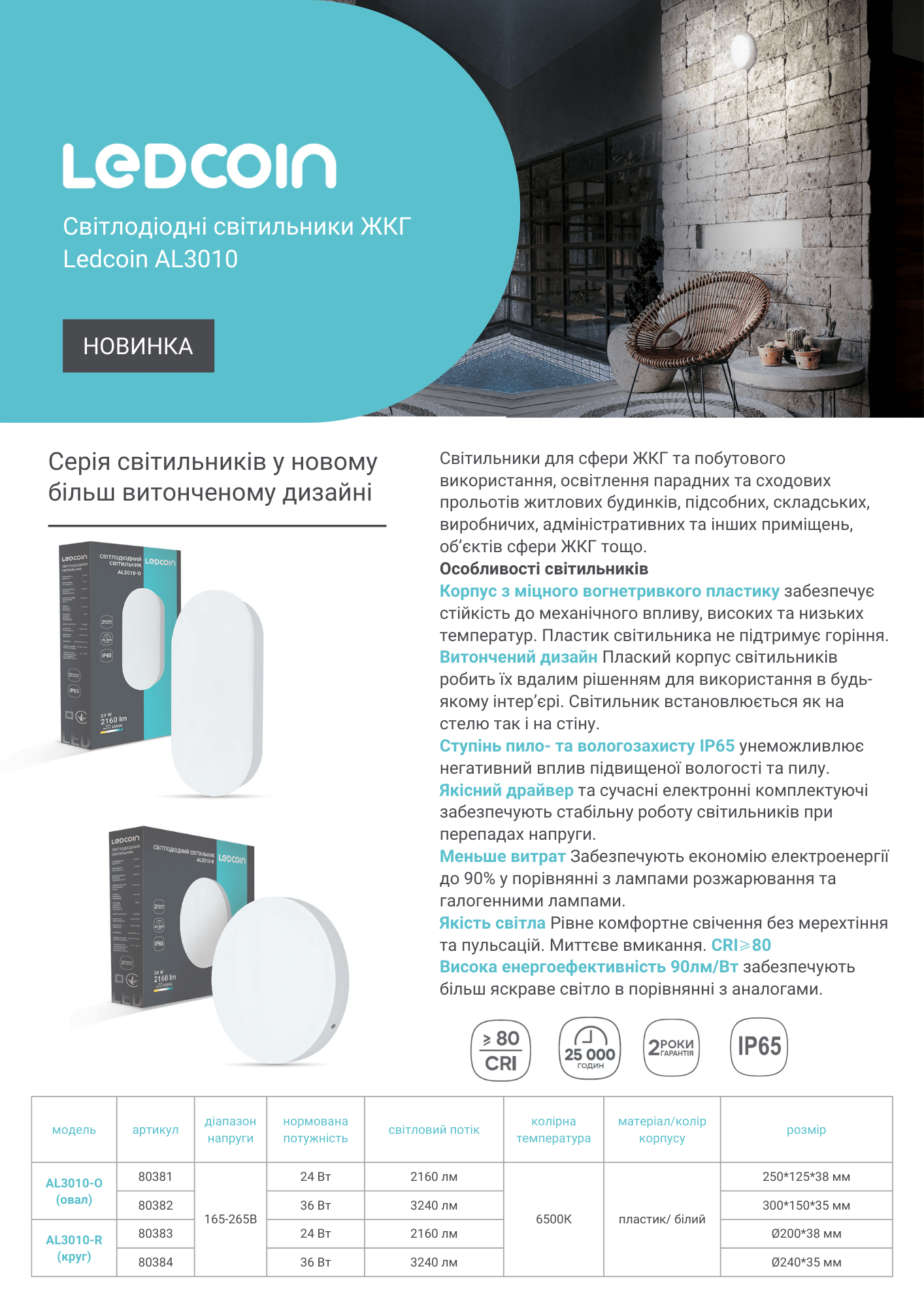 Світлодіодні світильники ЖКГ Ledcoin AL3010