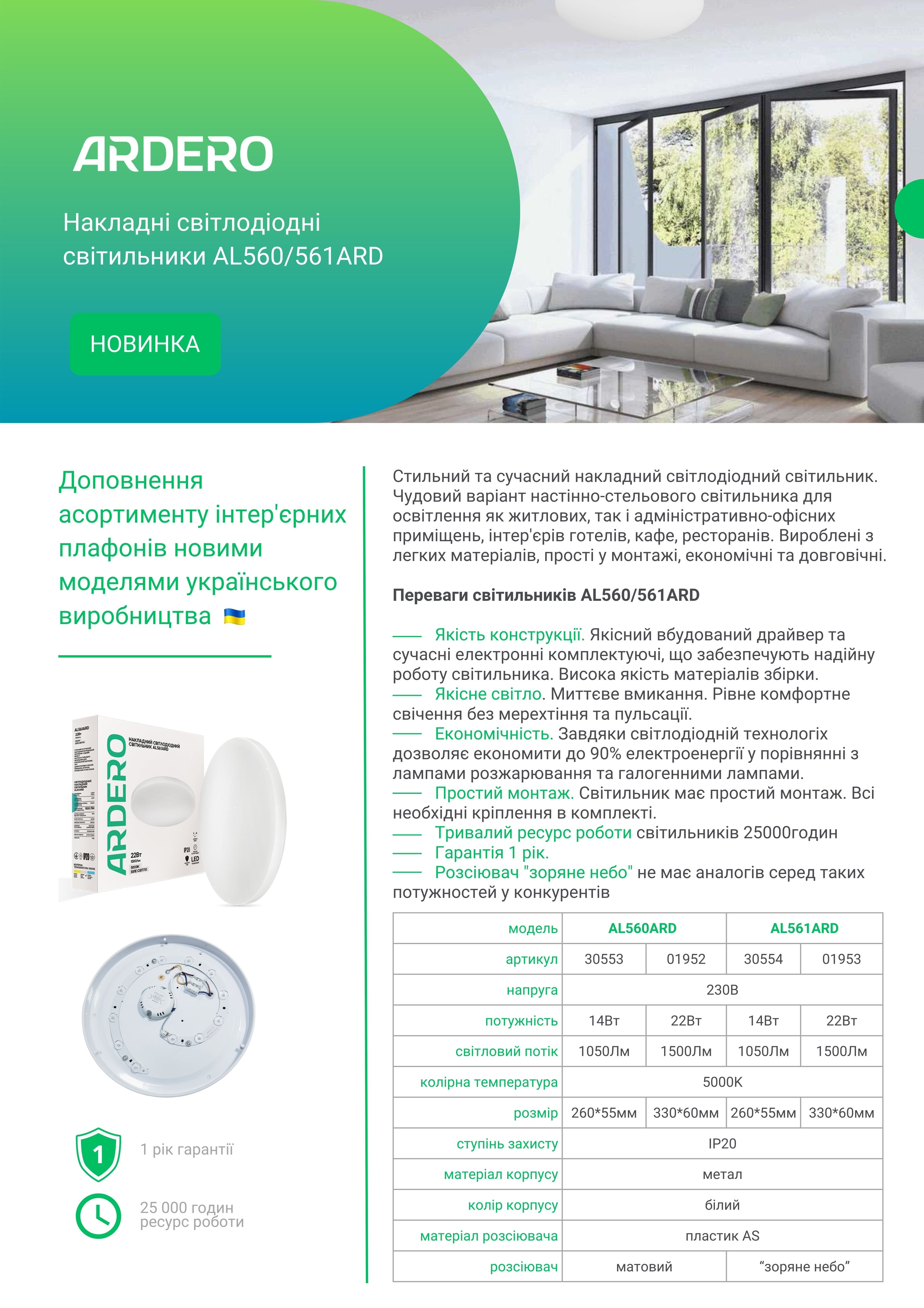 Якість конструкції. Якісний вбудований драйвер та сучасні електронні комплектуючі, що забезпечують надійну роботу світильника. Висока якість матеріалів збірки.