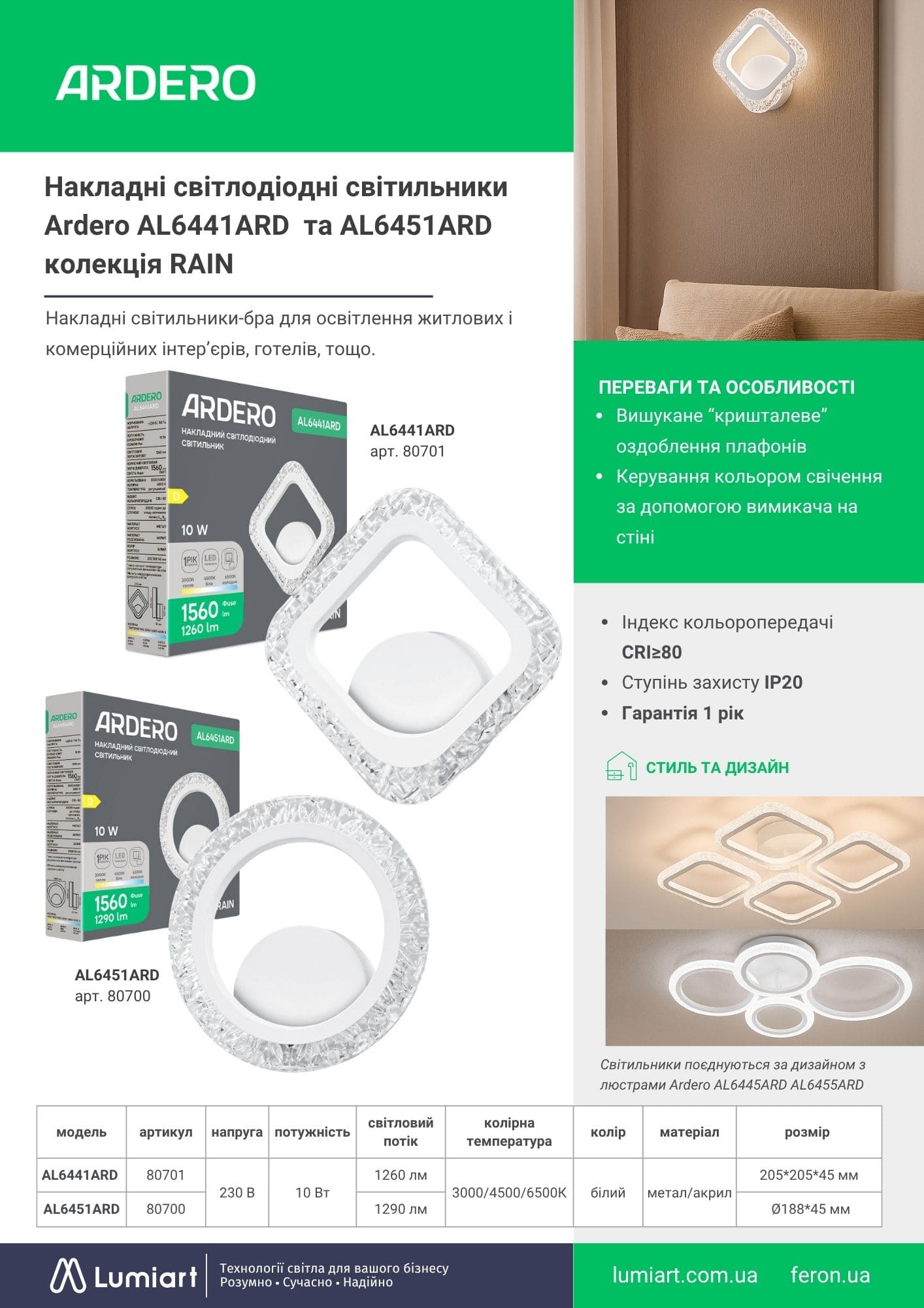 Накладні світлодіодні світильники Ardero AL6451ARD колекція RAIN
