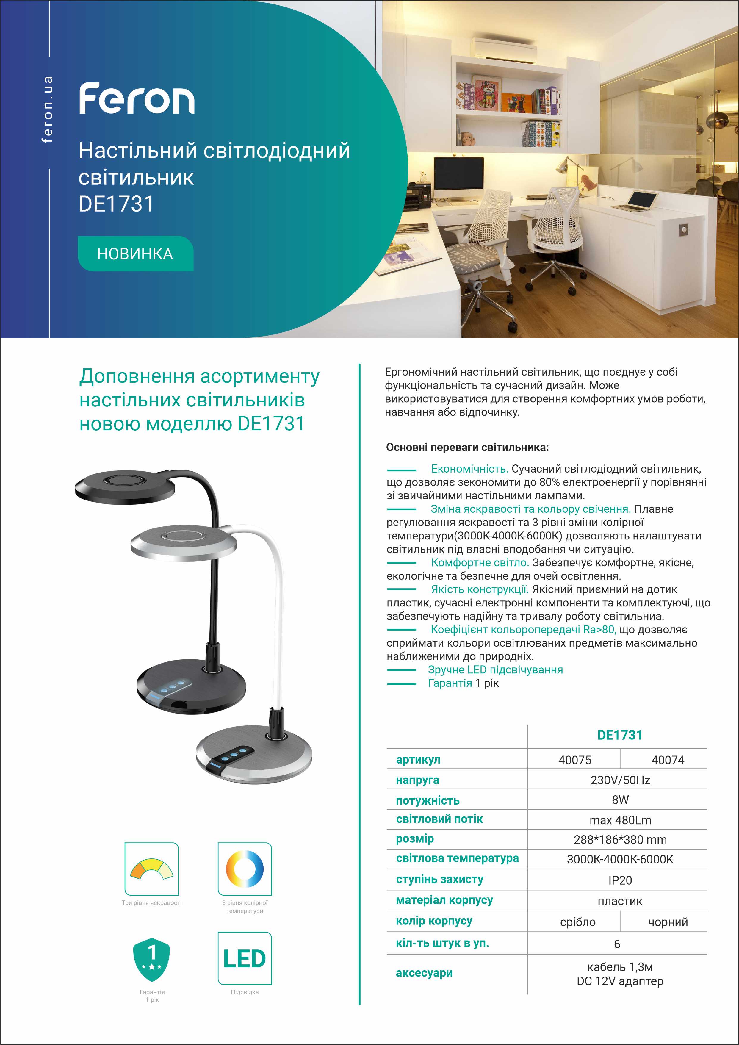 світильник Feron DE1731 в стильному дизайні відмінно підійде для сучасного