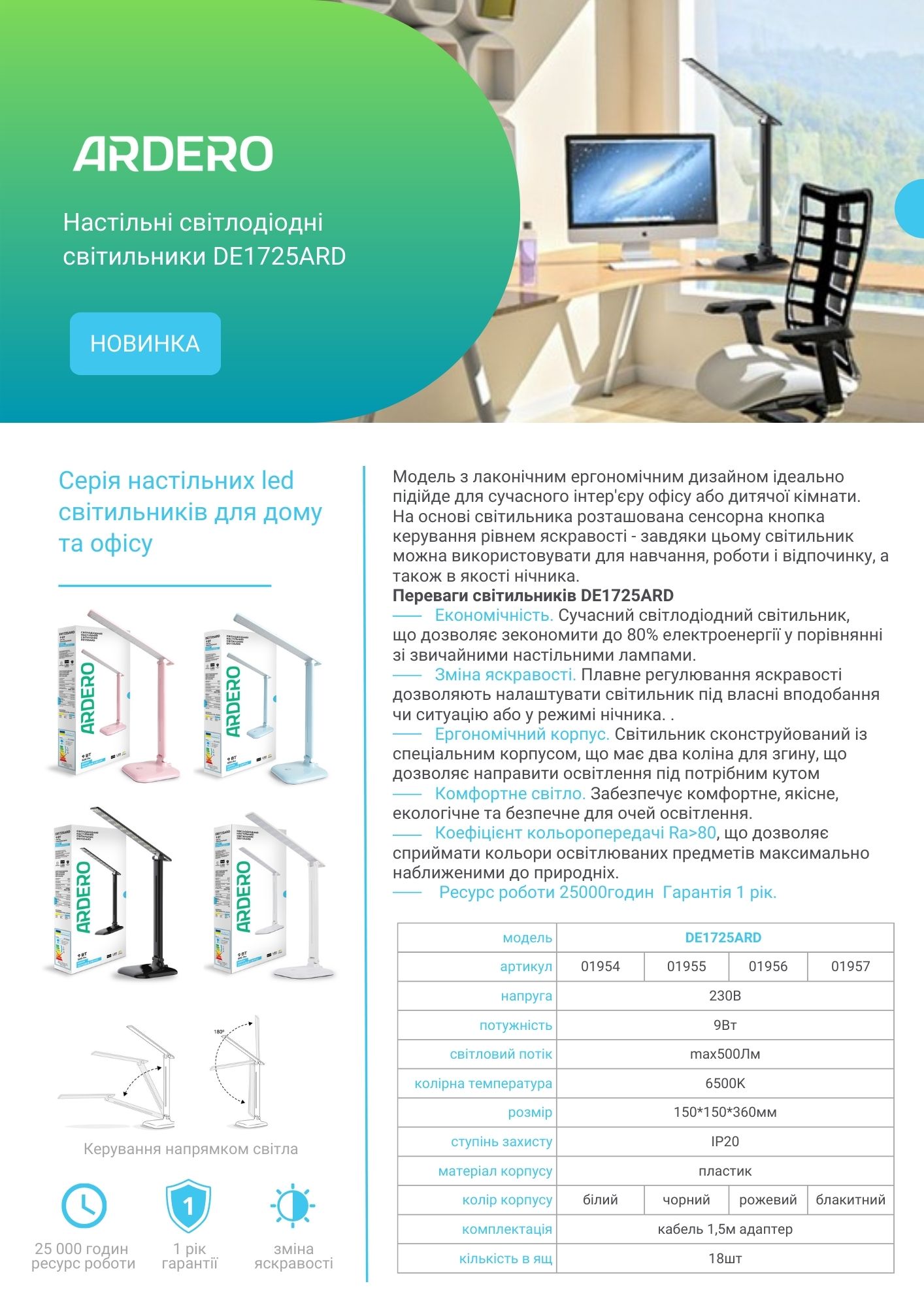 Настільний світильник Ardero DE1725ARD з лаконічним