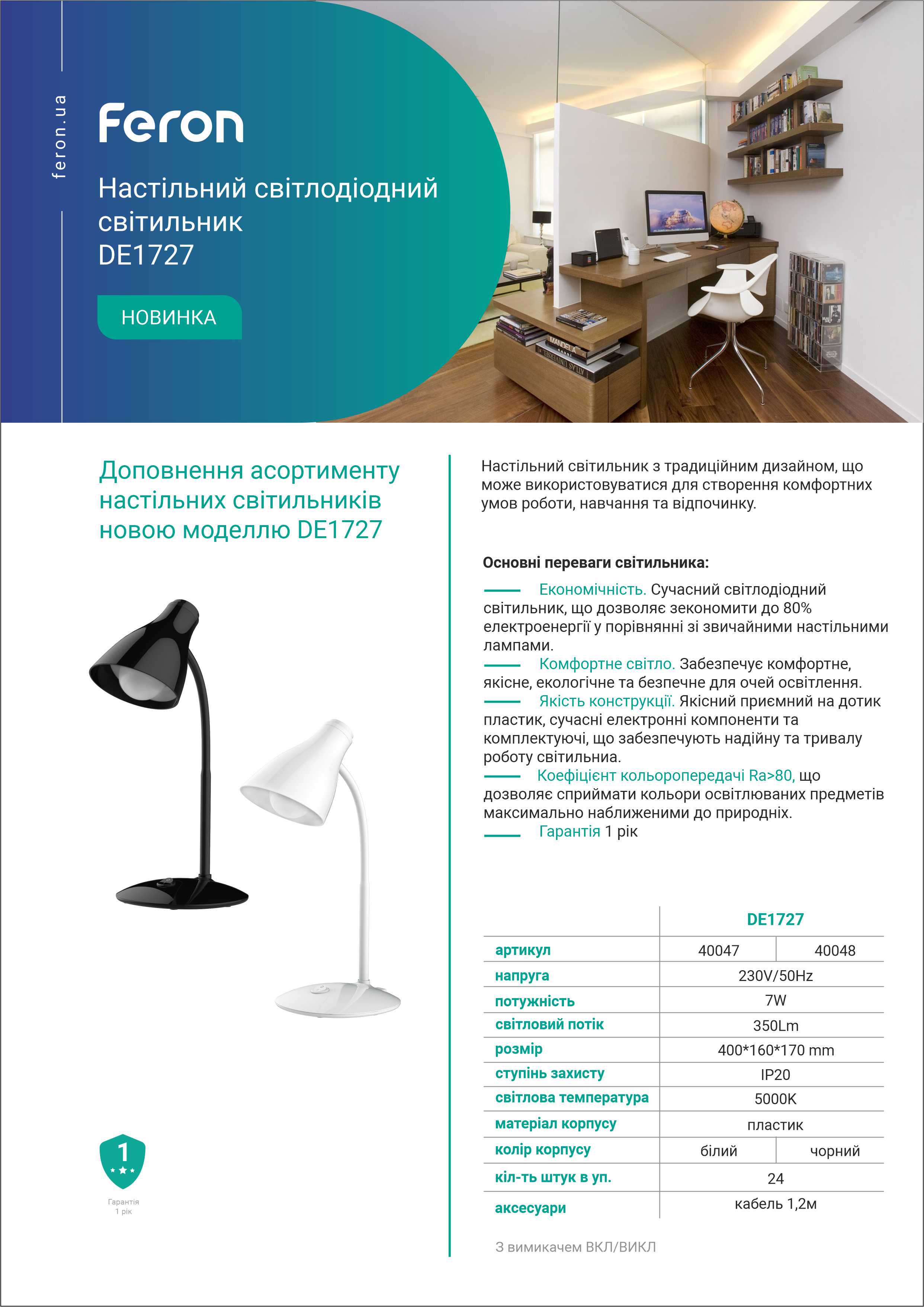 світильник Feron DE1727 в стилистиці традиційної настільної лампи 60-х ідеально
