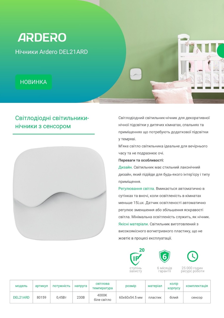 Регулювання світла. Вмикається автоматично в сутінках та вночі, коли освітленість в кімнатах меньше 15Lux. Датчик освітленості автоматично регулює зменшення або збільшення яскравості світла. Мінімальна освітленість служить, як нічник.