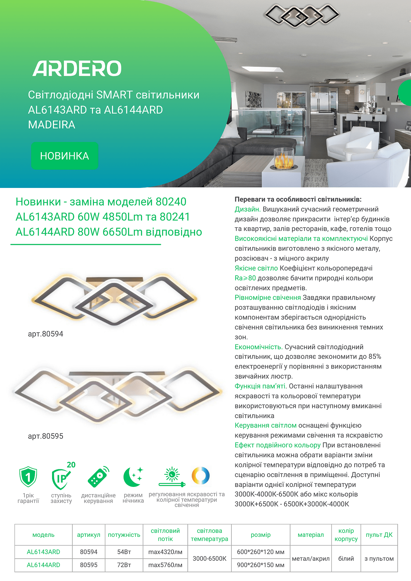 Світлодіодні SMART світильники AL6143ARD та AL6144ARD MADEIRA