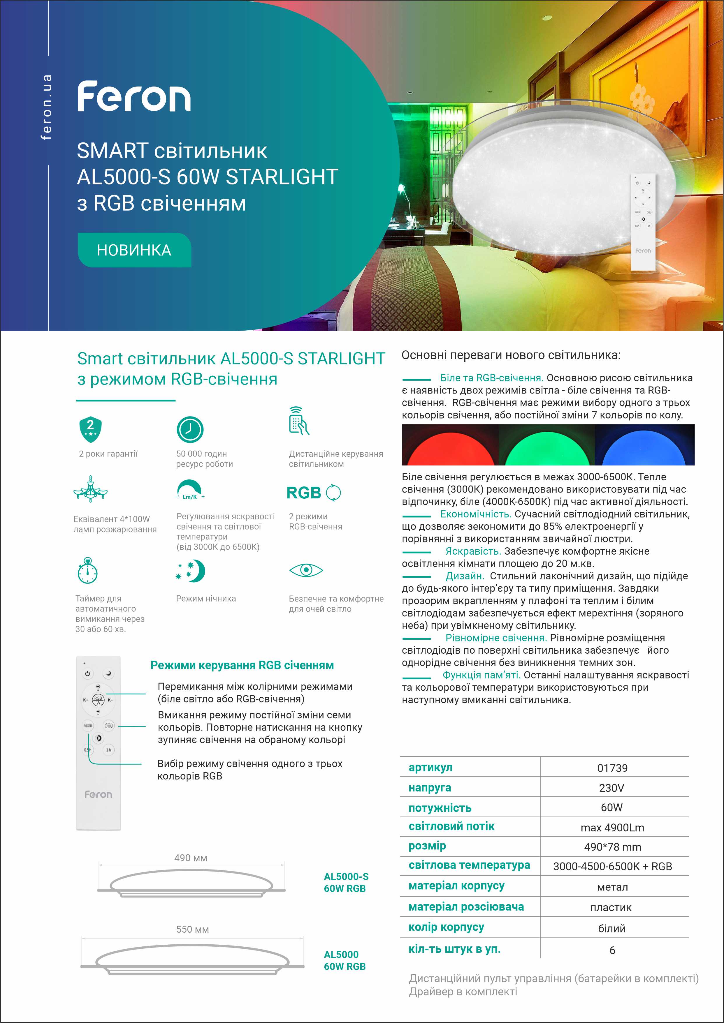 | Світловий потік, lm | 4900 |