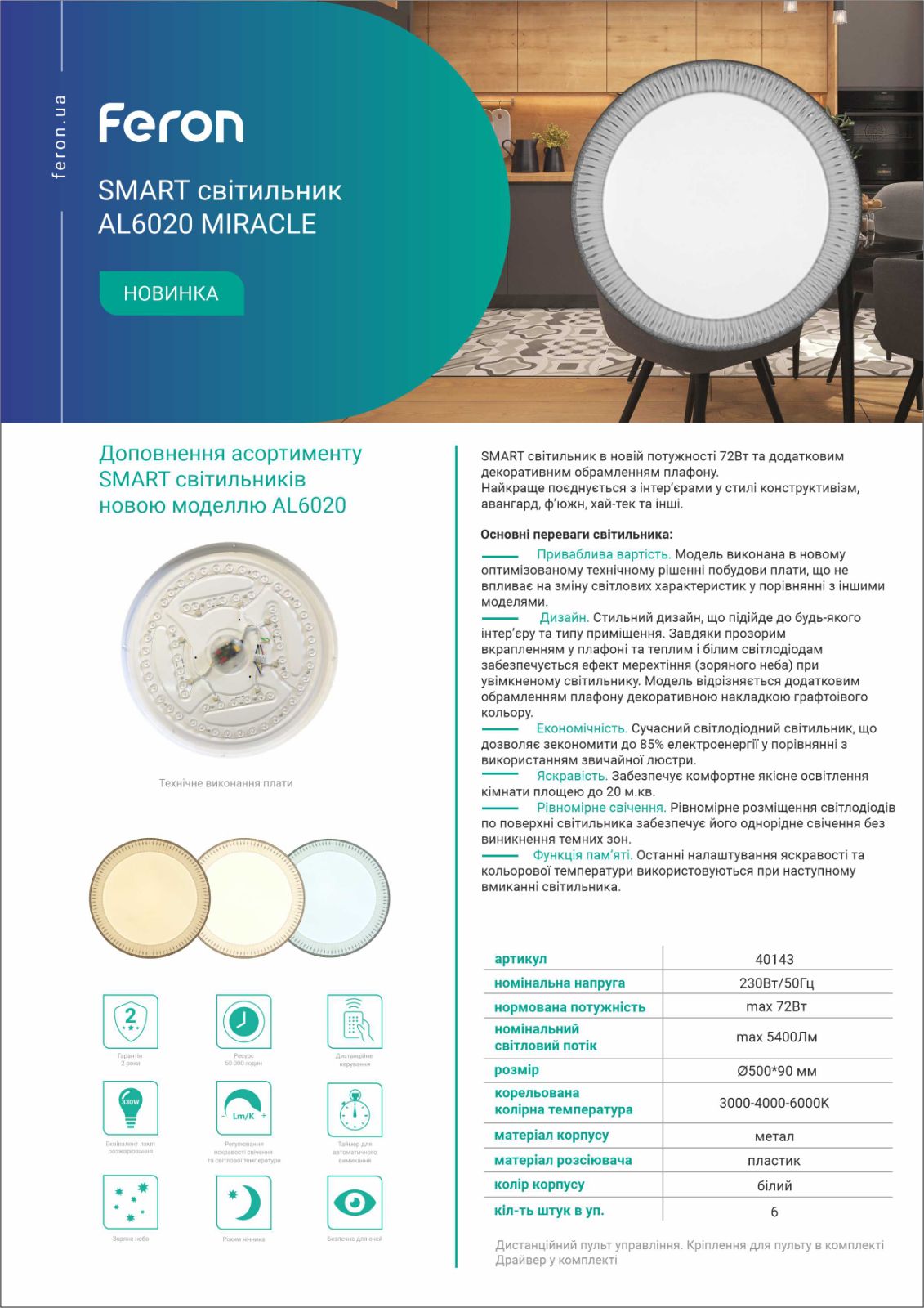 Світлодіодний світильник Feron MIRACLE – SMART світильник в