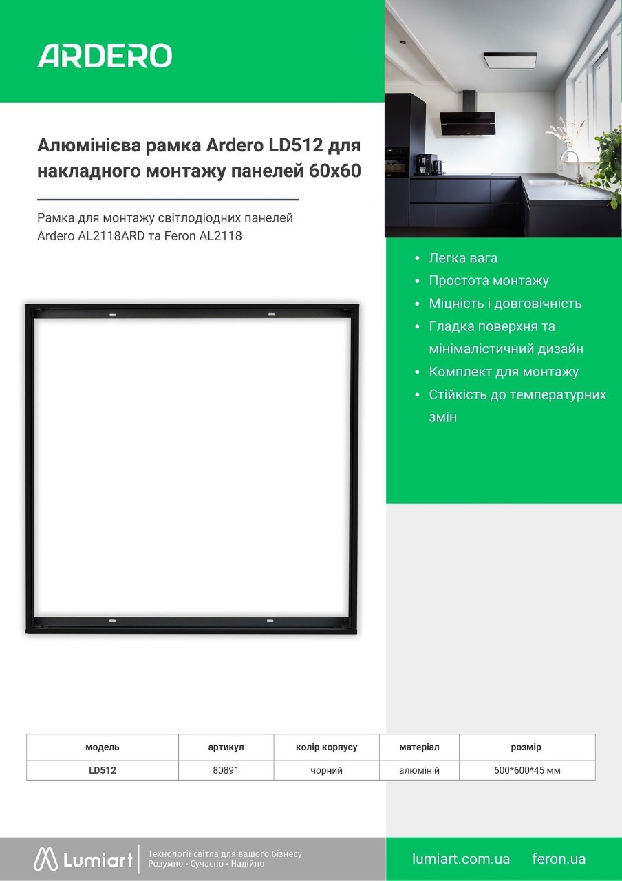 Алюмінієва рамка для накладного монтажу панелей 60*60см Ardero LD512