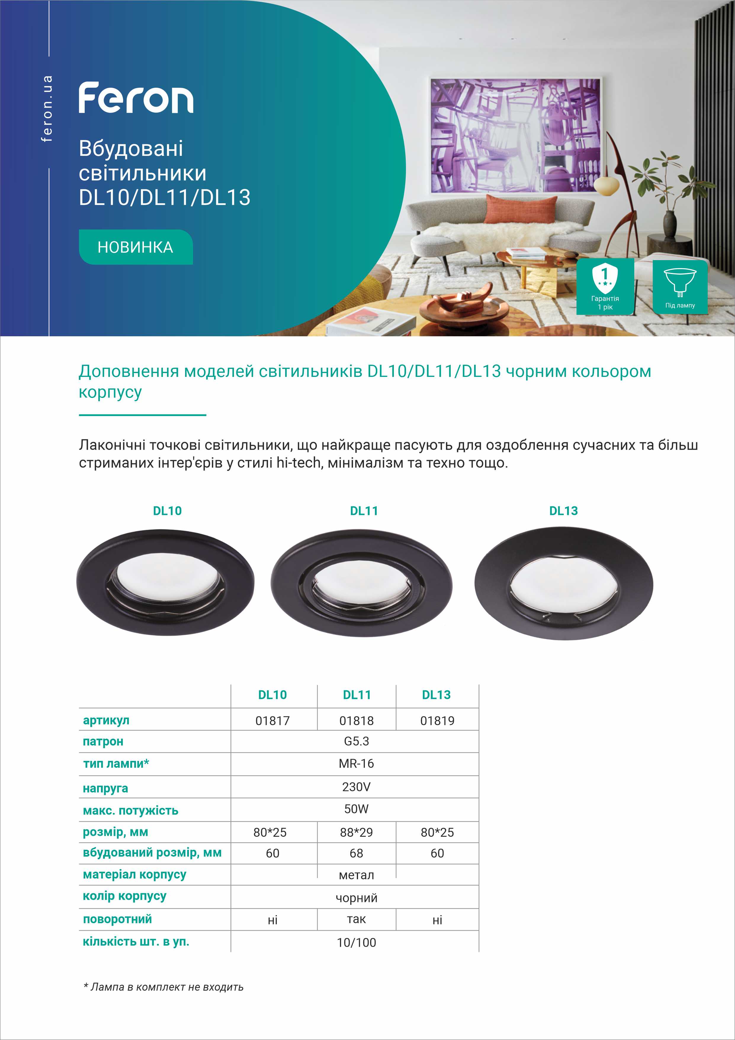 Цей вбудований світильник Feron DL11 чорний стане відмінним рішенням для тих, хто цінує стиль та функціональність у своєму освітленні.