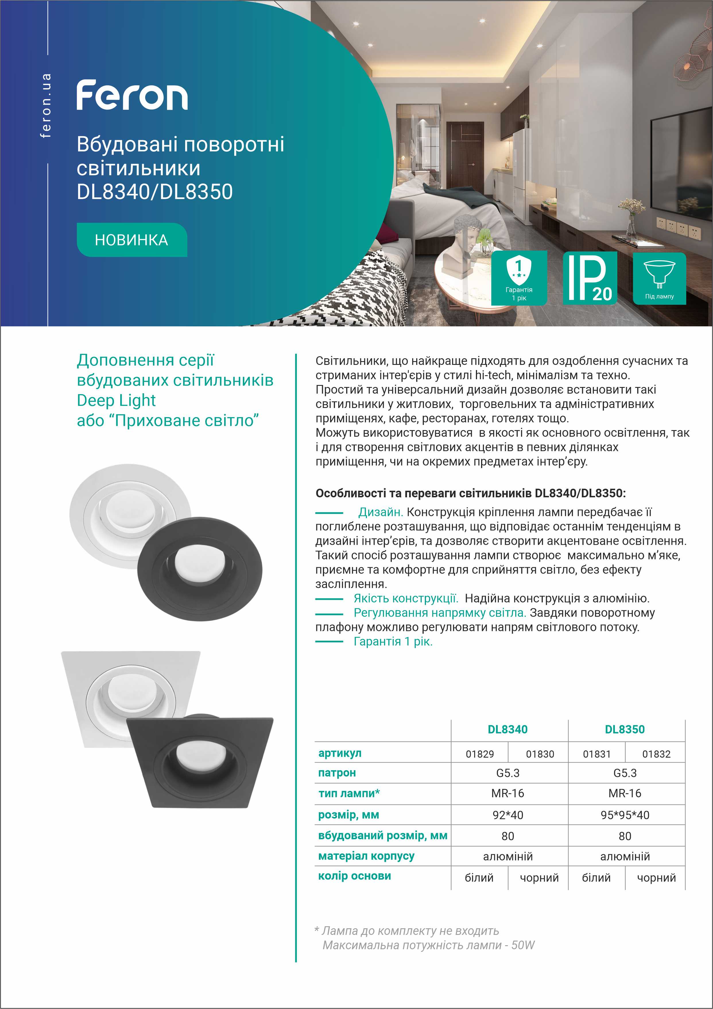 та переваги світильників DL8340/DL8350: